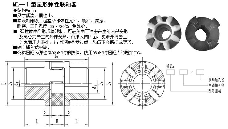 ML—Ⅰ型星形彈性聯(lián)軸器基本參數(shù)和主要尺寸